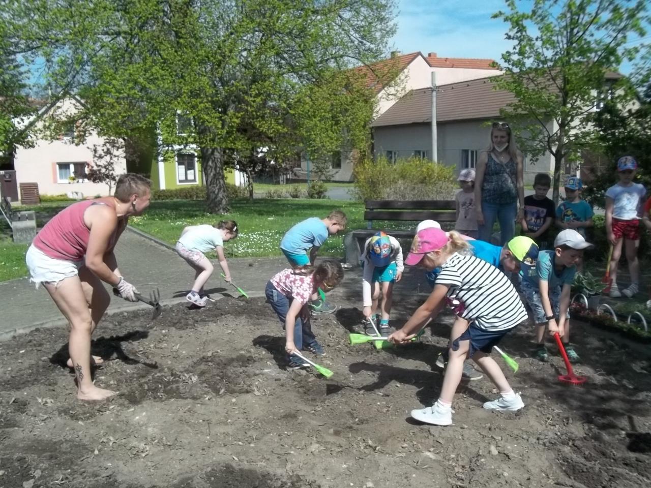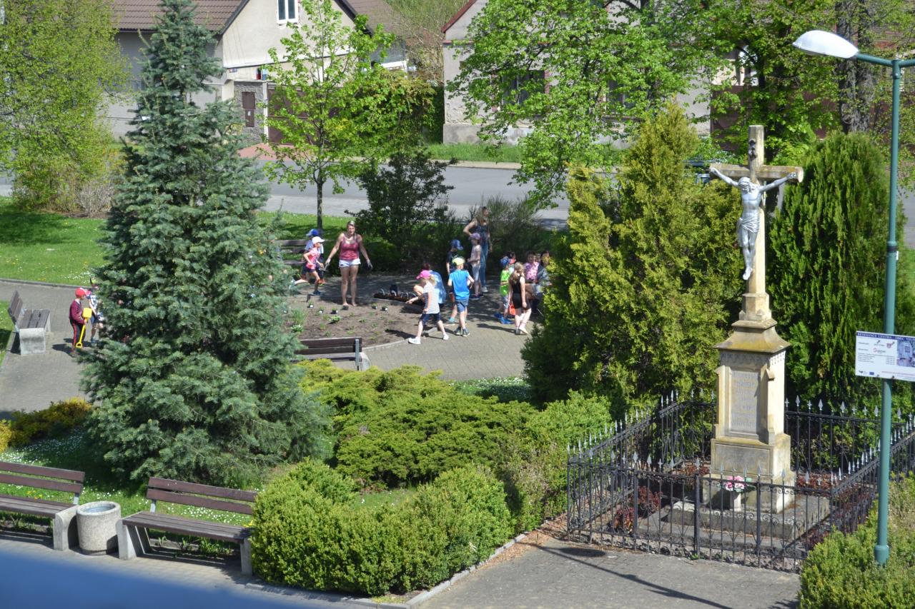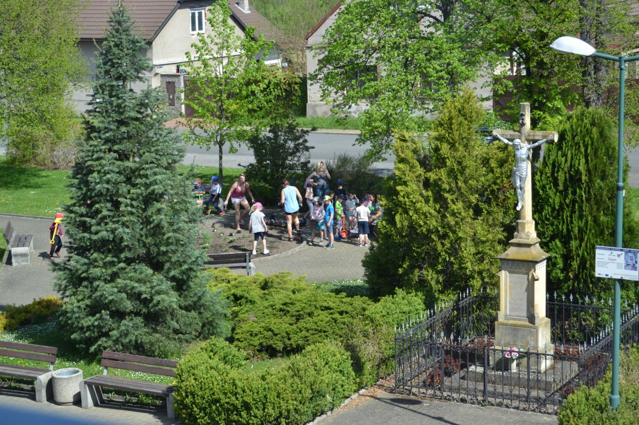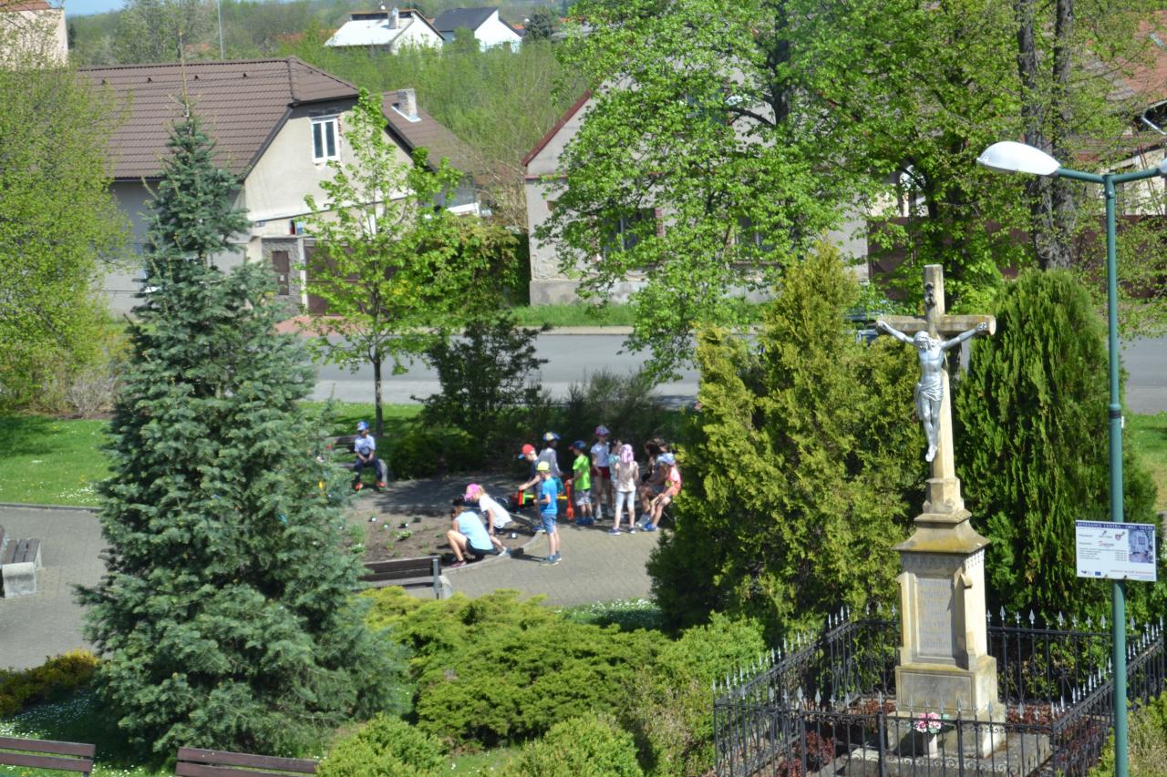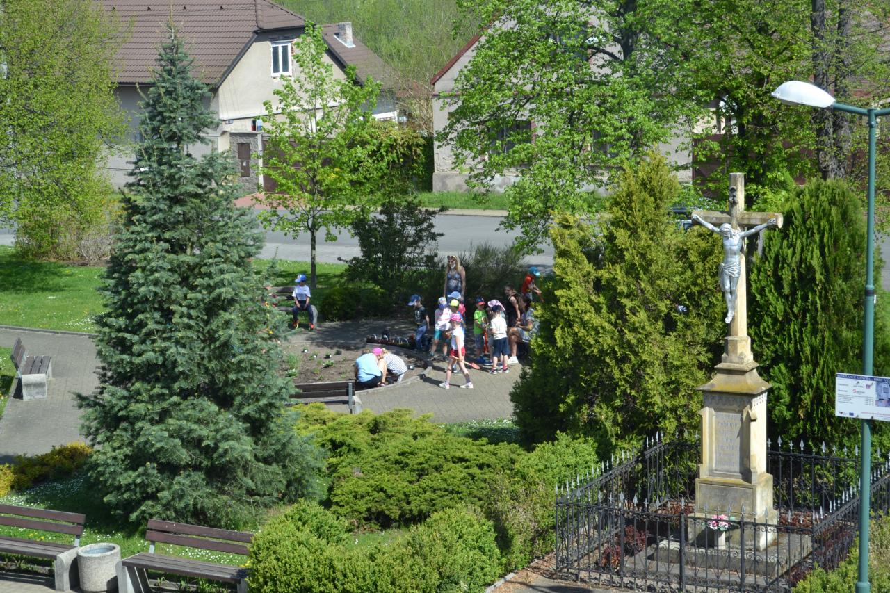 Děti z MŠ vzaly za své, udělat krásné náměstí a osázely středový kruh květinami. :-)